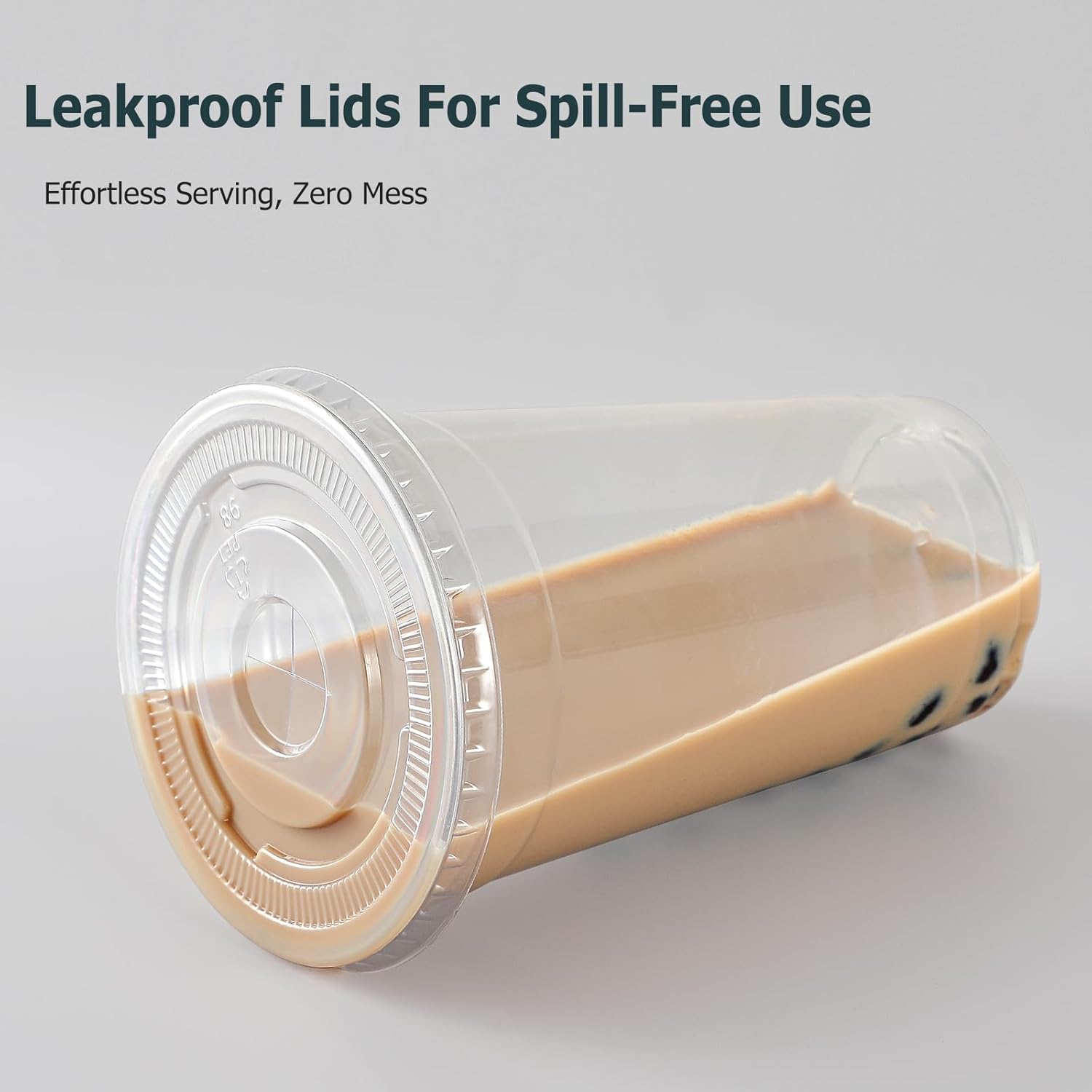 • Complete Leak-Proof Set with Straws: Includes 100 cups, 100 airtight lids, and 100 straws. Lids feature secure X-slots to hold straws firmly, preventing spills during transport. Ideal for iced coffee, smoothies, or on-the-go drinks with mess-free convenience.