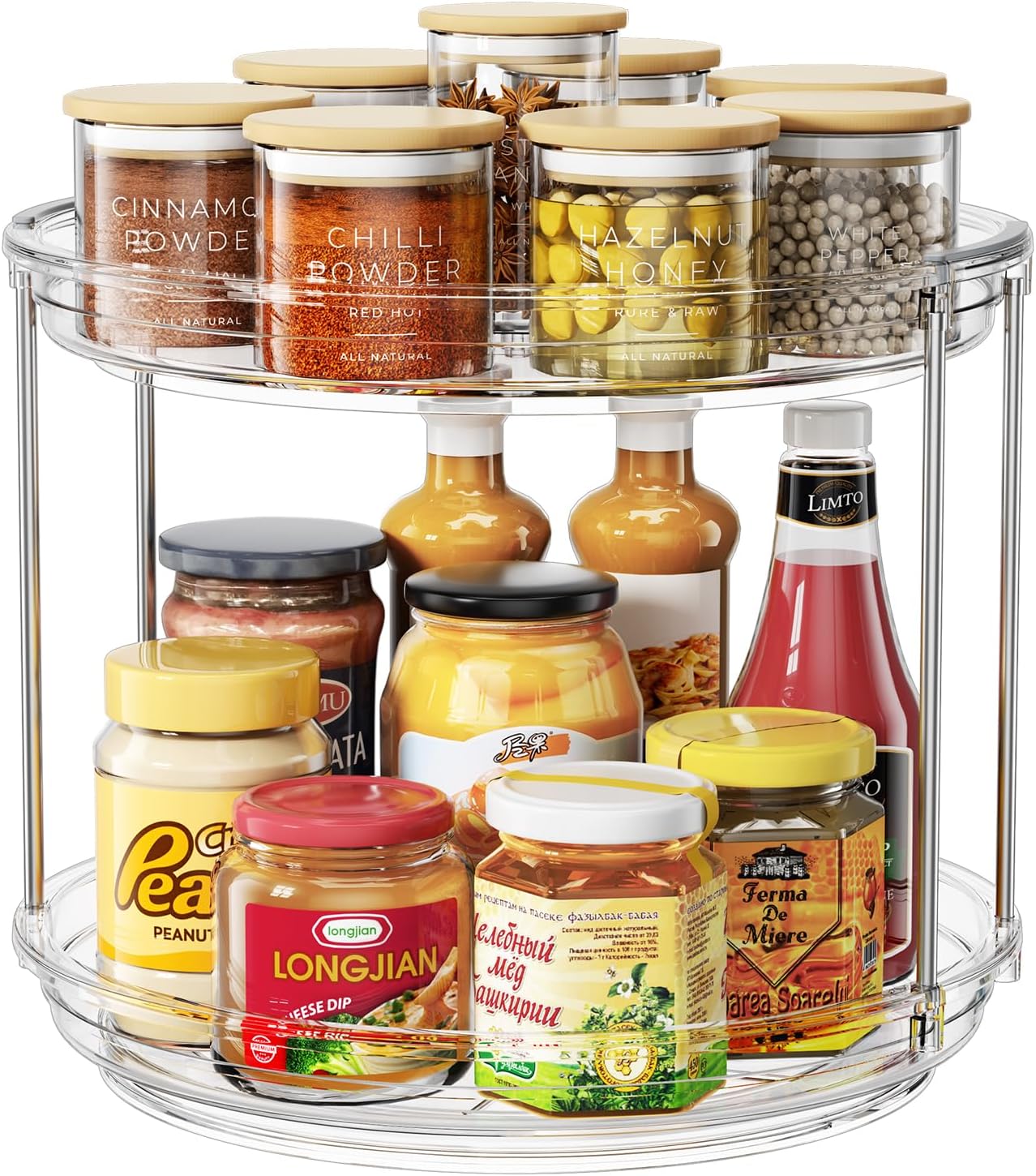 Optimize vertical storage with our 2-tier Lazy Susan organizer, ideal for narrow cabinets. Its dual-layer construction effectively doubles your storage capacity without taking up additional space, keeping spices, seasonings, and essentials neatly organized and within reach.