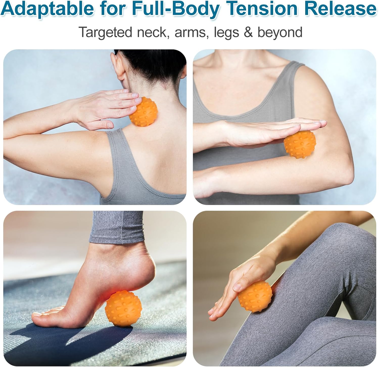 • Multi-Use Body Care with 3D Massage Ball: Provided with massage ball tracks on both sides, allowing you to press into foot acupressure points while sitting or standing. You can use the textured ball on the shoulders, back, waist, and arms to achieve full-body stimulation. Giving you the relief you need after a long day.