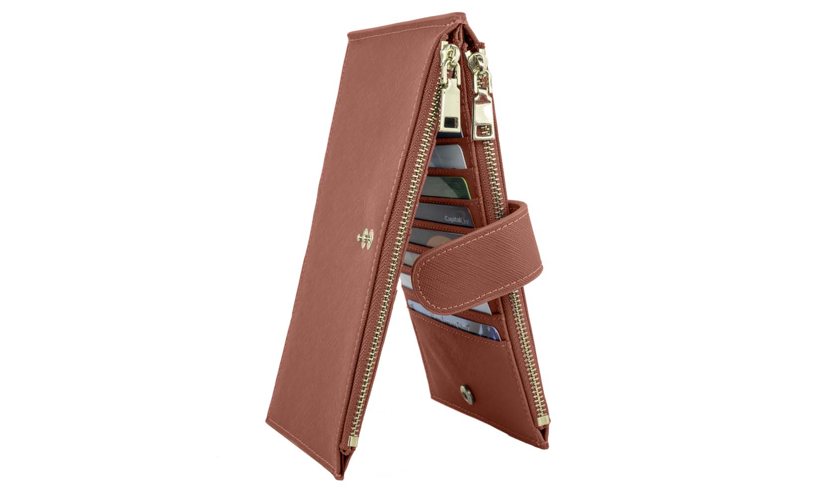 This folding snap wallet keeps all your important items organized. Keep all your cards and cash safe with this snap wallet made from genuine leather with snap closure..