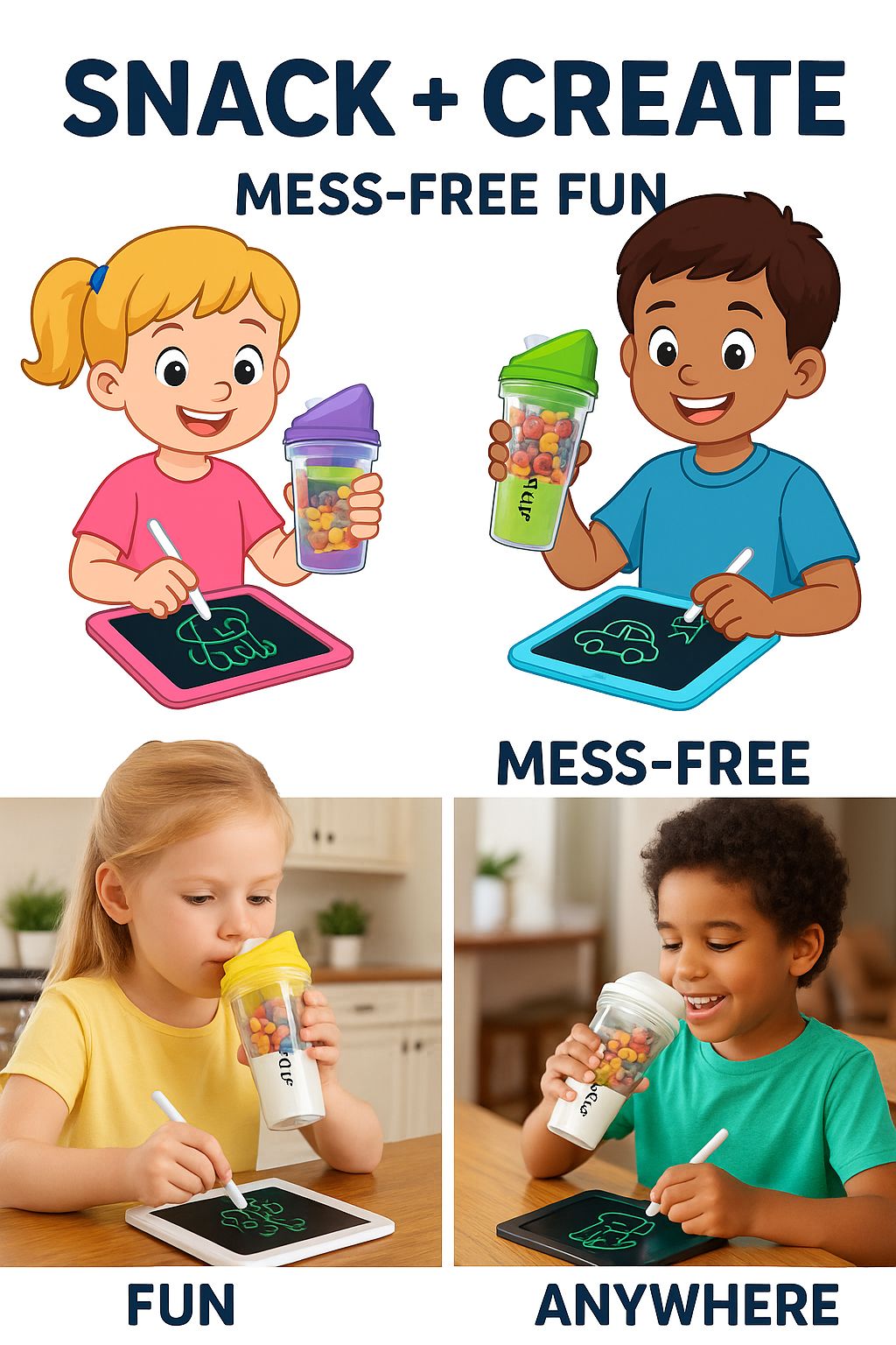 Turn snack time into playtime with this 2-in-1 breakfast & creativity kit.