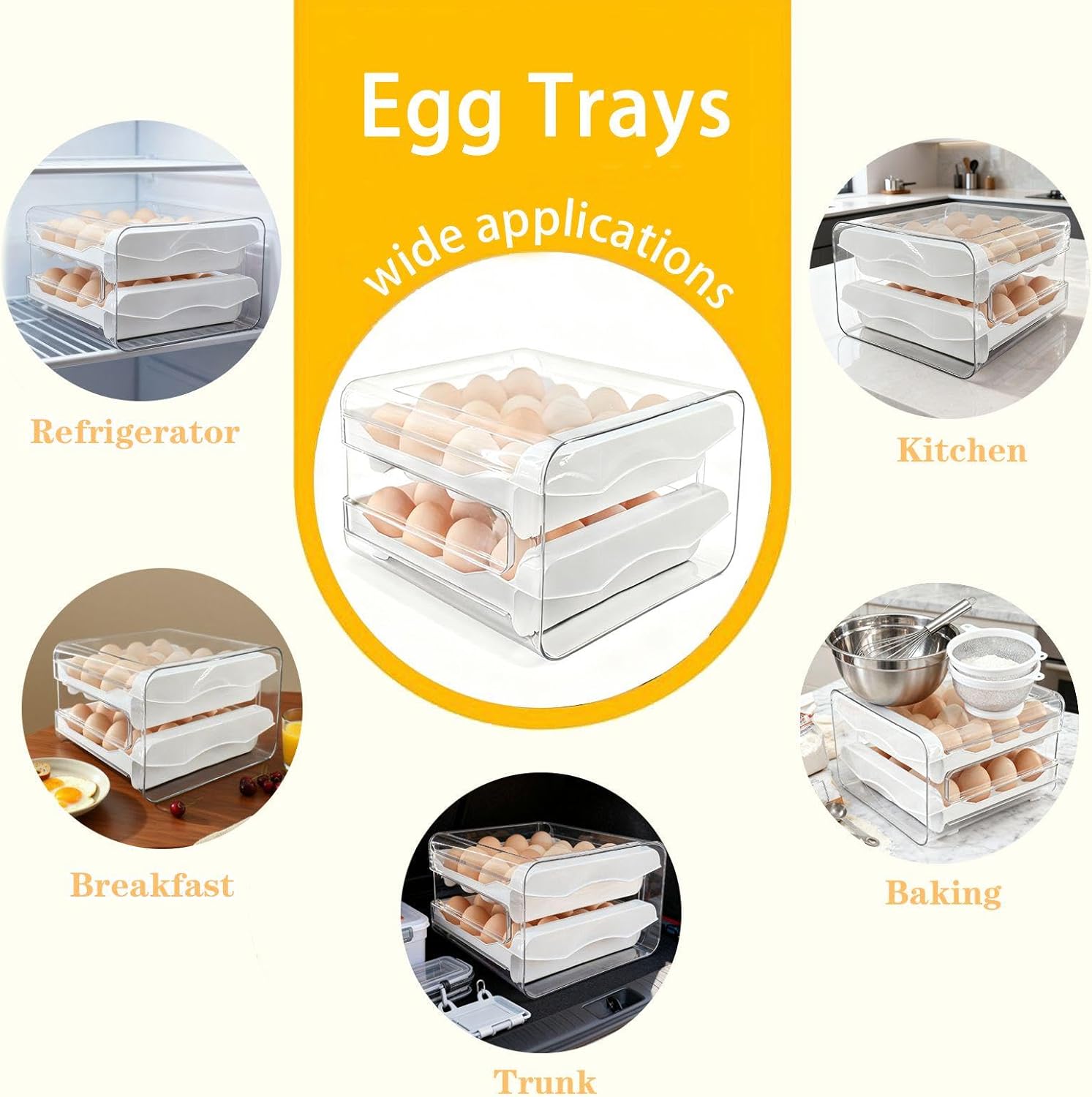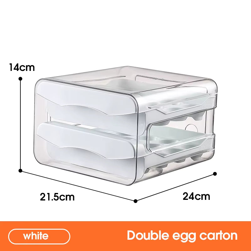 Keep your fridge neat and your eggs protected with this spacious 32-egg drawer organizer. Designed with two smooth-pull drawers and individual curved slots, it stores eggs vertically to prevent cracks while keeping everything easy to see and access. Made from thick, durable plastic with a sleek transparent finish, it saves space, stacks easily, and keeps your kitchen perfectly organized.