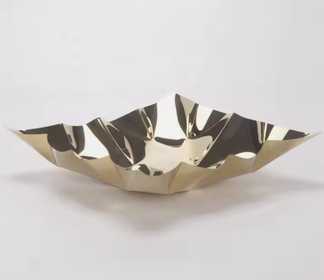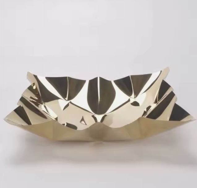 This elegant gold geometric styled platter tray bowl is perfect for serving, design, house décor, or for using as a fruit bowl.
