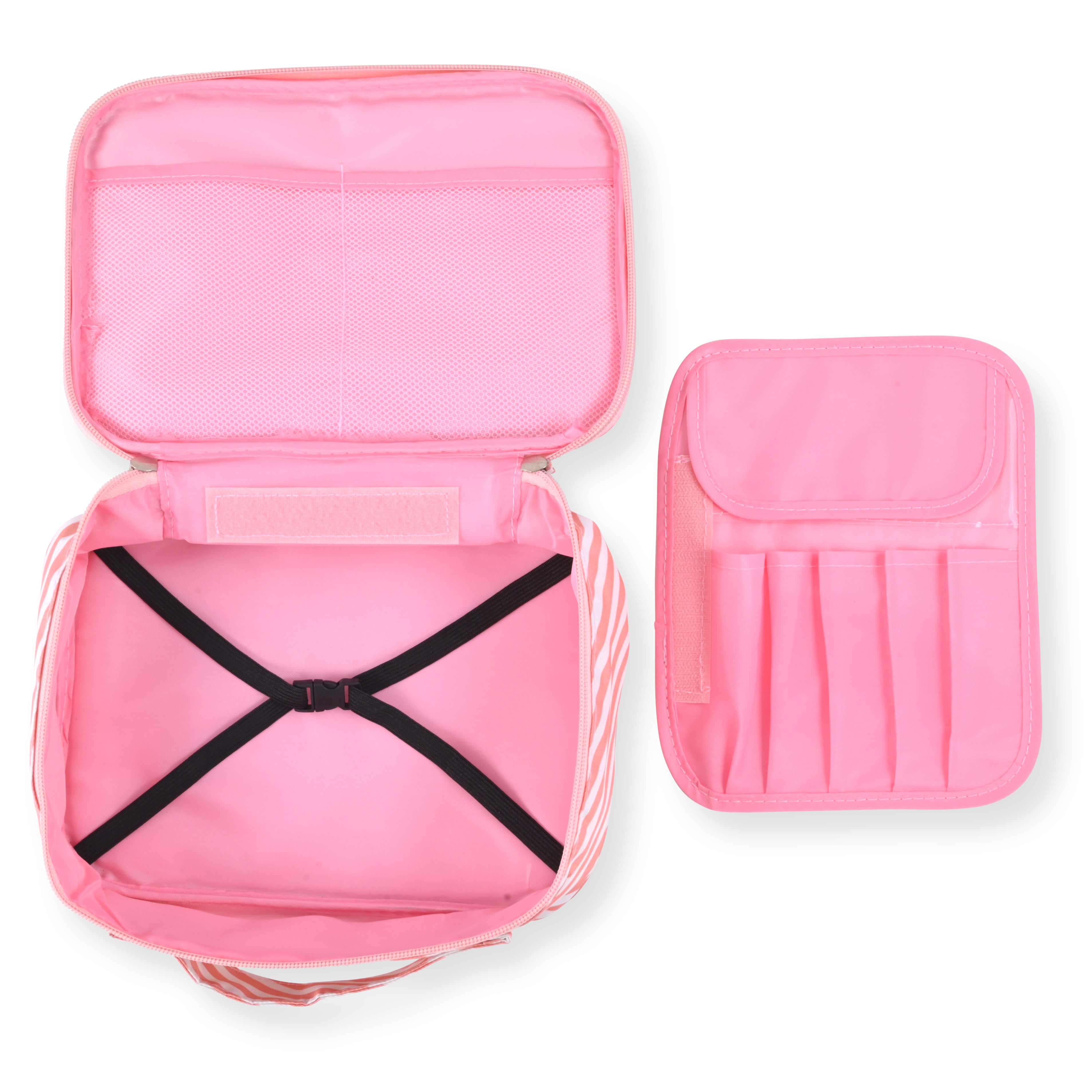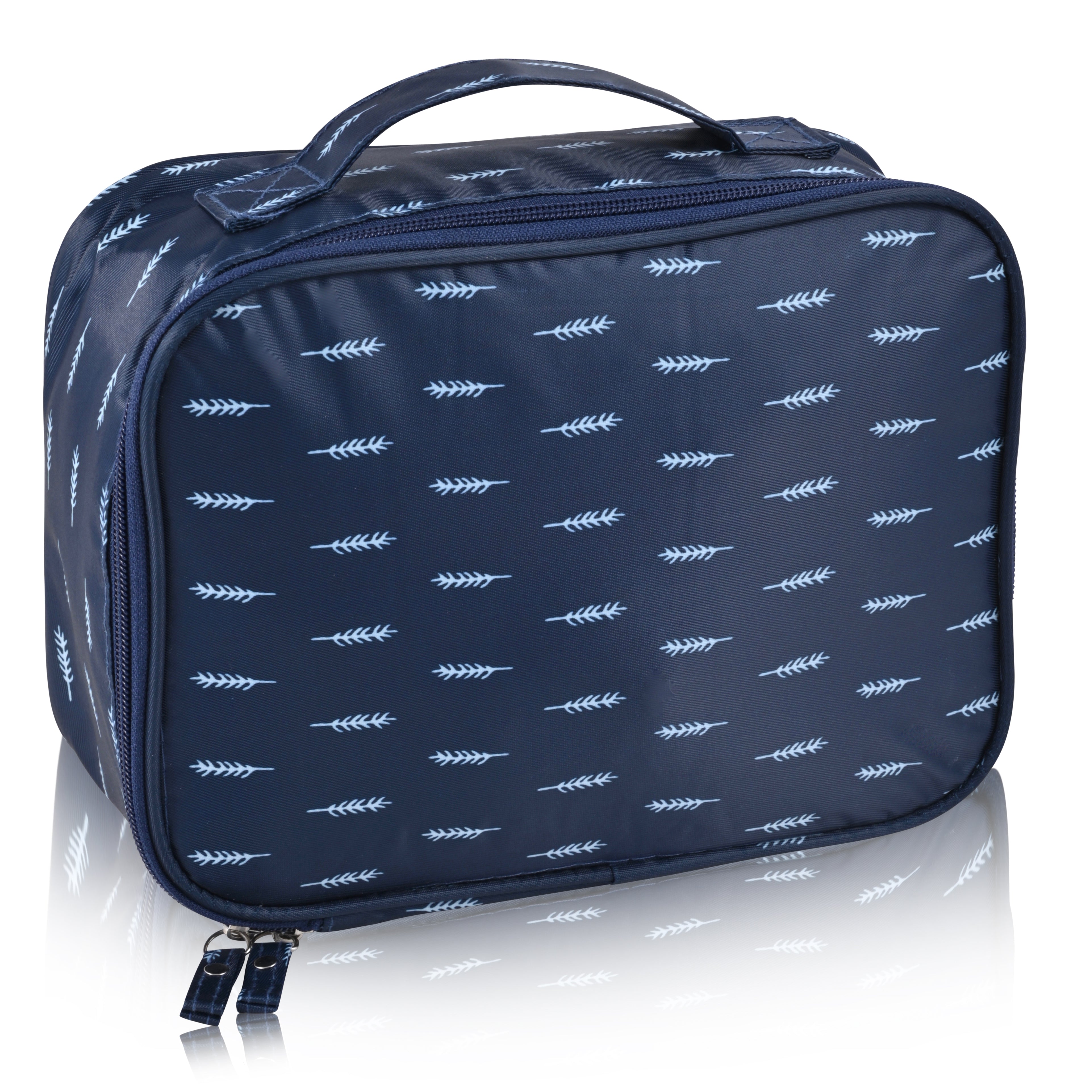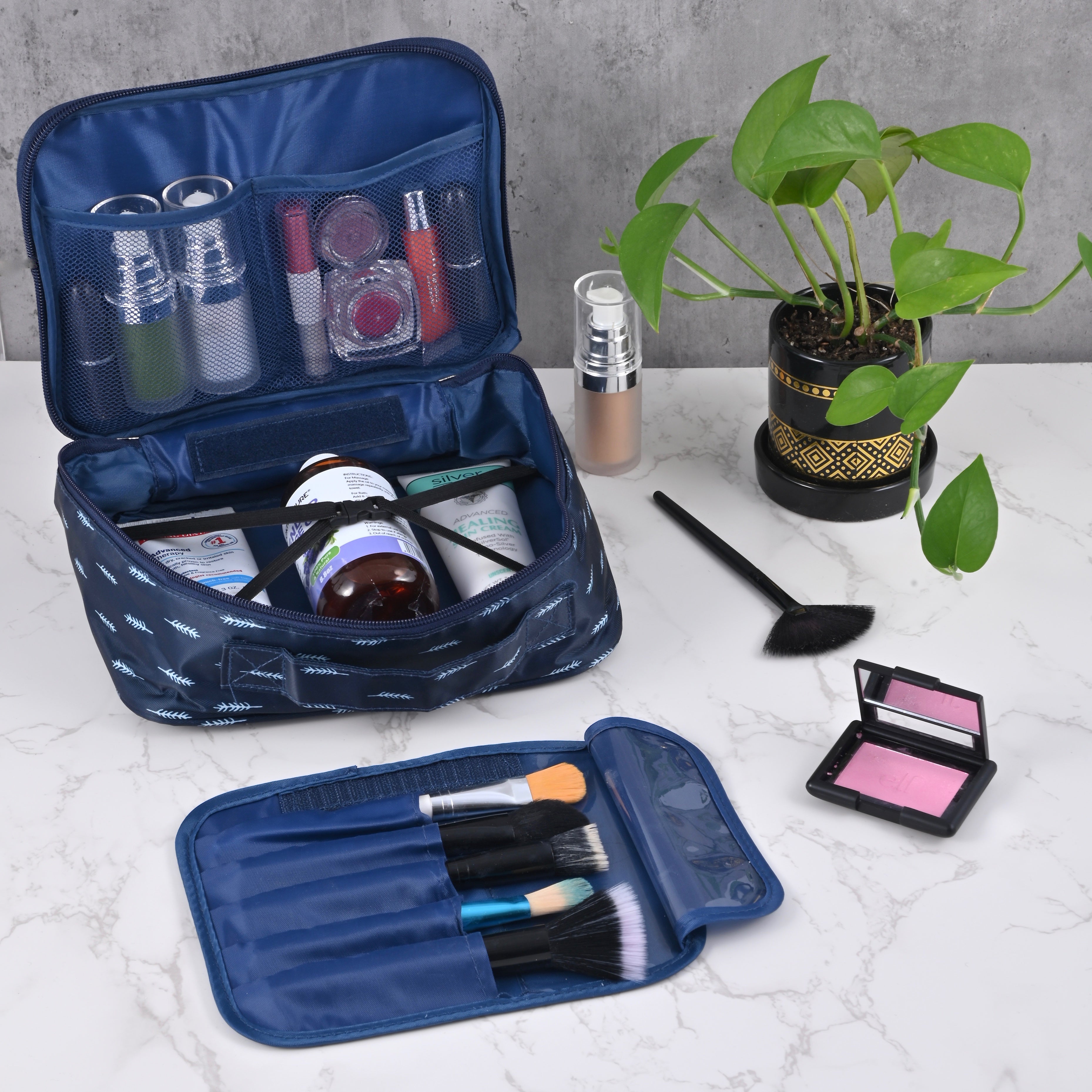 You will love these stylish and classy everyday portable cosmetic bags. Easily and quickly store all your beauty essentials in this perfect cosmetic bag. Great for travel, the medium-sized cosmetics bag has several storage areas for your small beauty tools. this bag is perfect for use in the bathroom and other occasions.