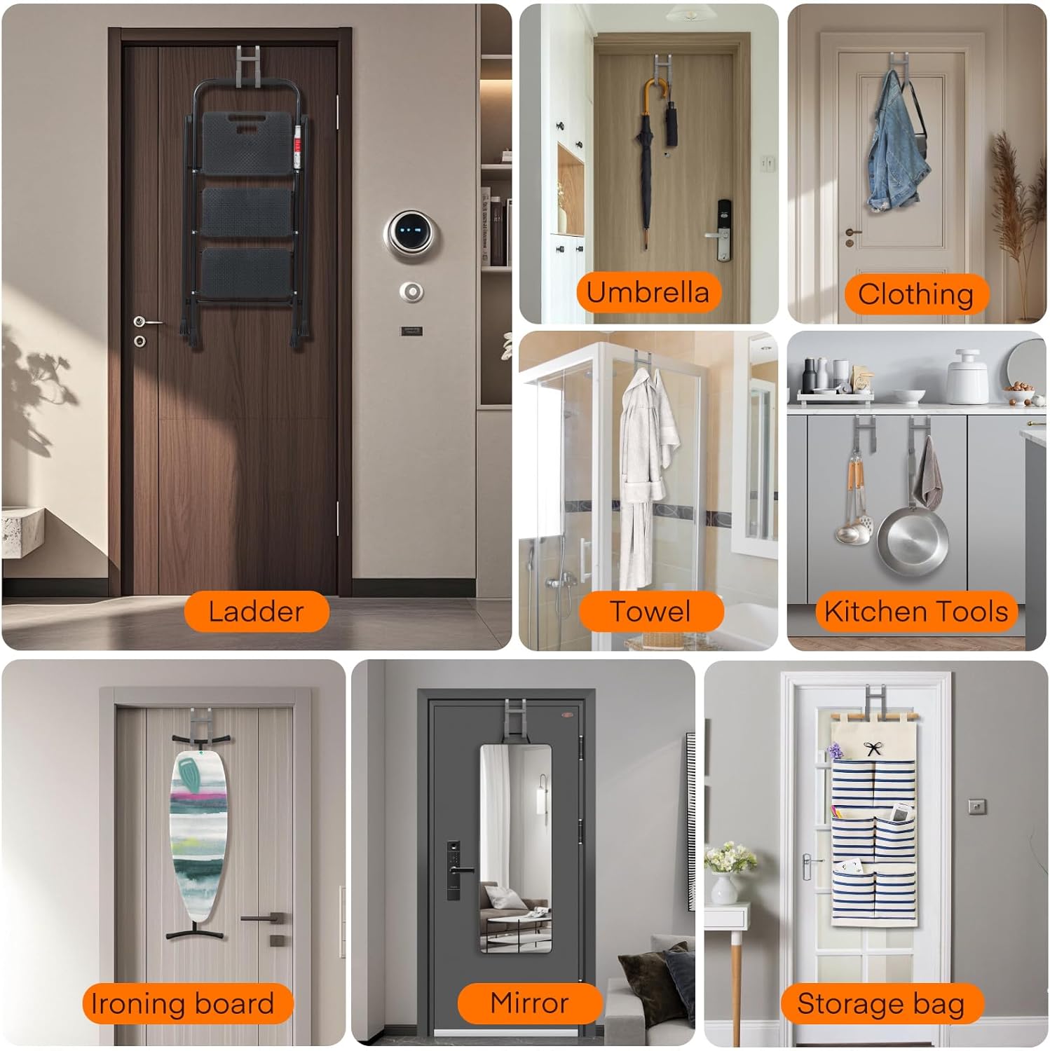 • Smart Dual-Hook & Stable Design: The door hanger hooks design with Double-Hooks, create more hanging space. It also crafted with 2 stabilizer, prevent tilting when unevenly loaded, allow the door to close without obstruction