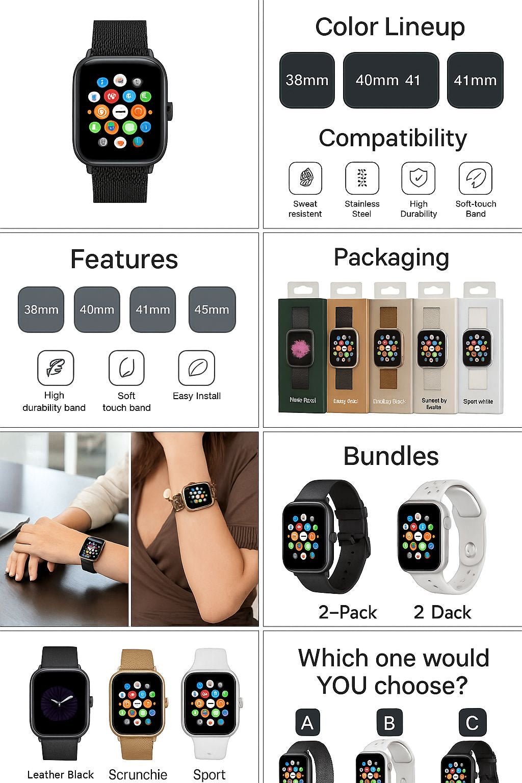 Crafted for both comfort and durability, each band is designed to fit 42mm / 44mm / 45mm Apple Watch models. Whether you’re going to the gym, dressing up for work, heading to dinner, or keeping it casual, this all-in-one bundle ensures you always have the right look on your wrist.