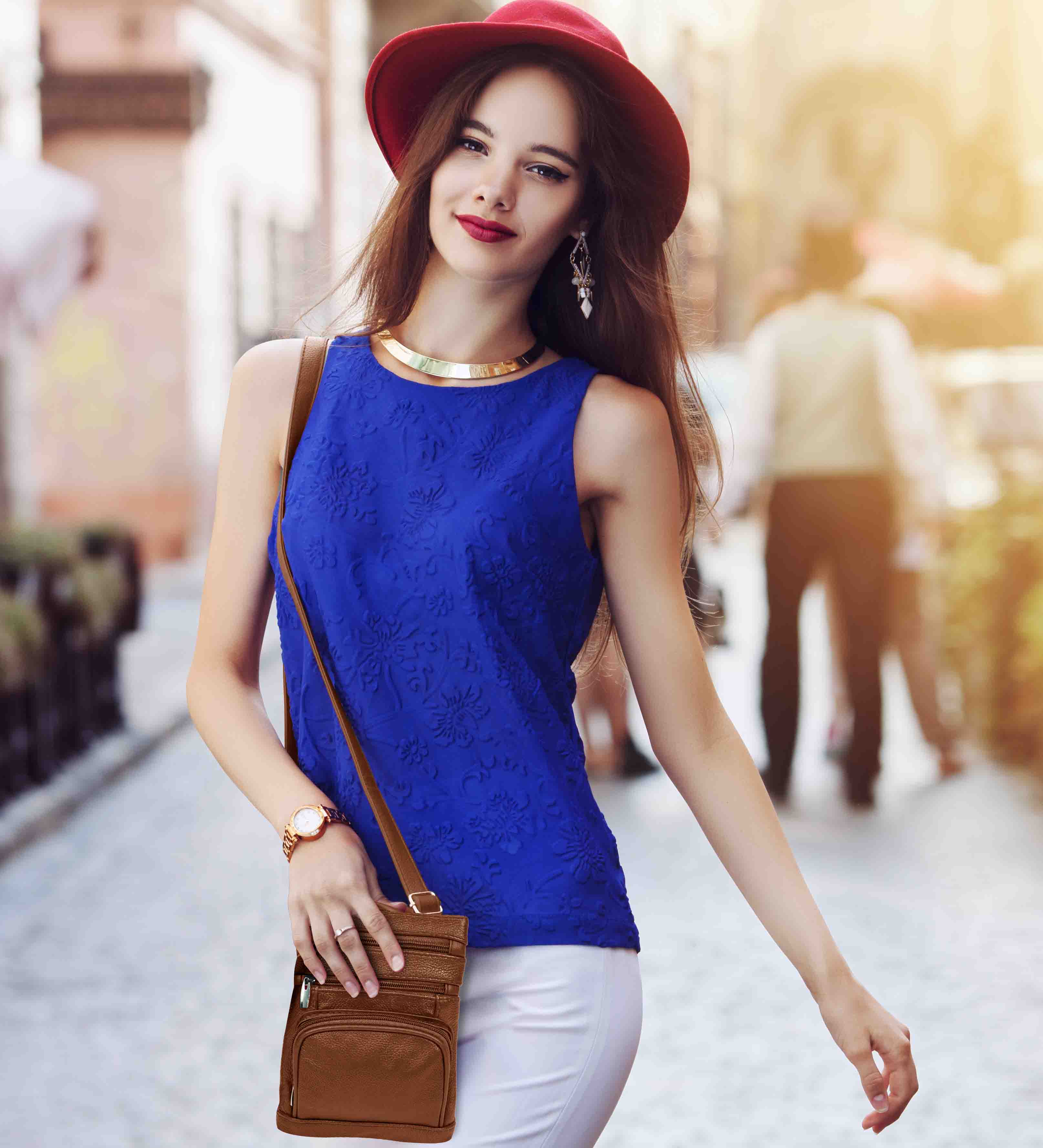 This stylish crossbody bag is made from 100% genuine leather and available in 5 styles. With an adjustable shoulder strap and 3 front zip pockets, the bag is highly functional while retaining its fashionable style.