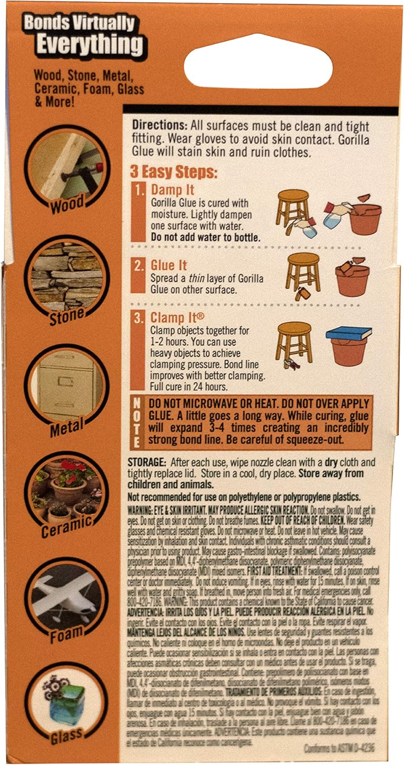Gorilla Original Gorilla Glue, Waterproof Polyurethane Glue, 2 Ounce Bottle, Brown