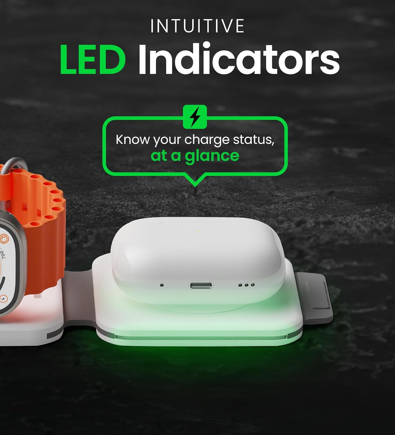 • Smart LED Charge Indicators: Know your charging status at a glance with intuitive LED lights for each device. This charging pad for Apple devices keeps you informed without interruptions, ensuring your devices are ready to go when you are.