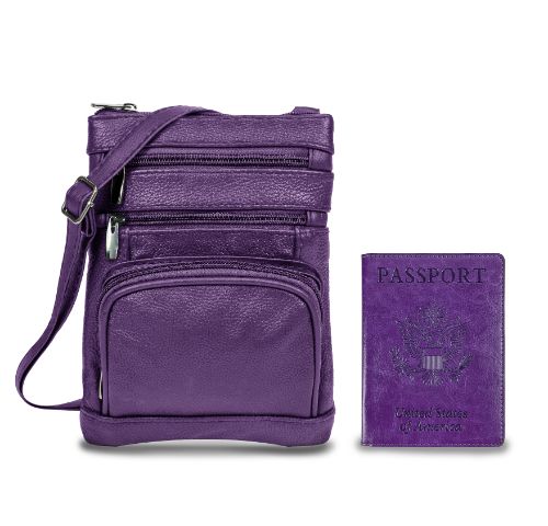 Leather Crossbody Bag with CDC Passport Holder- 5 Colors