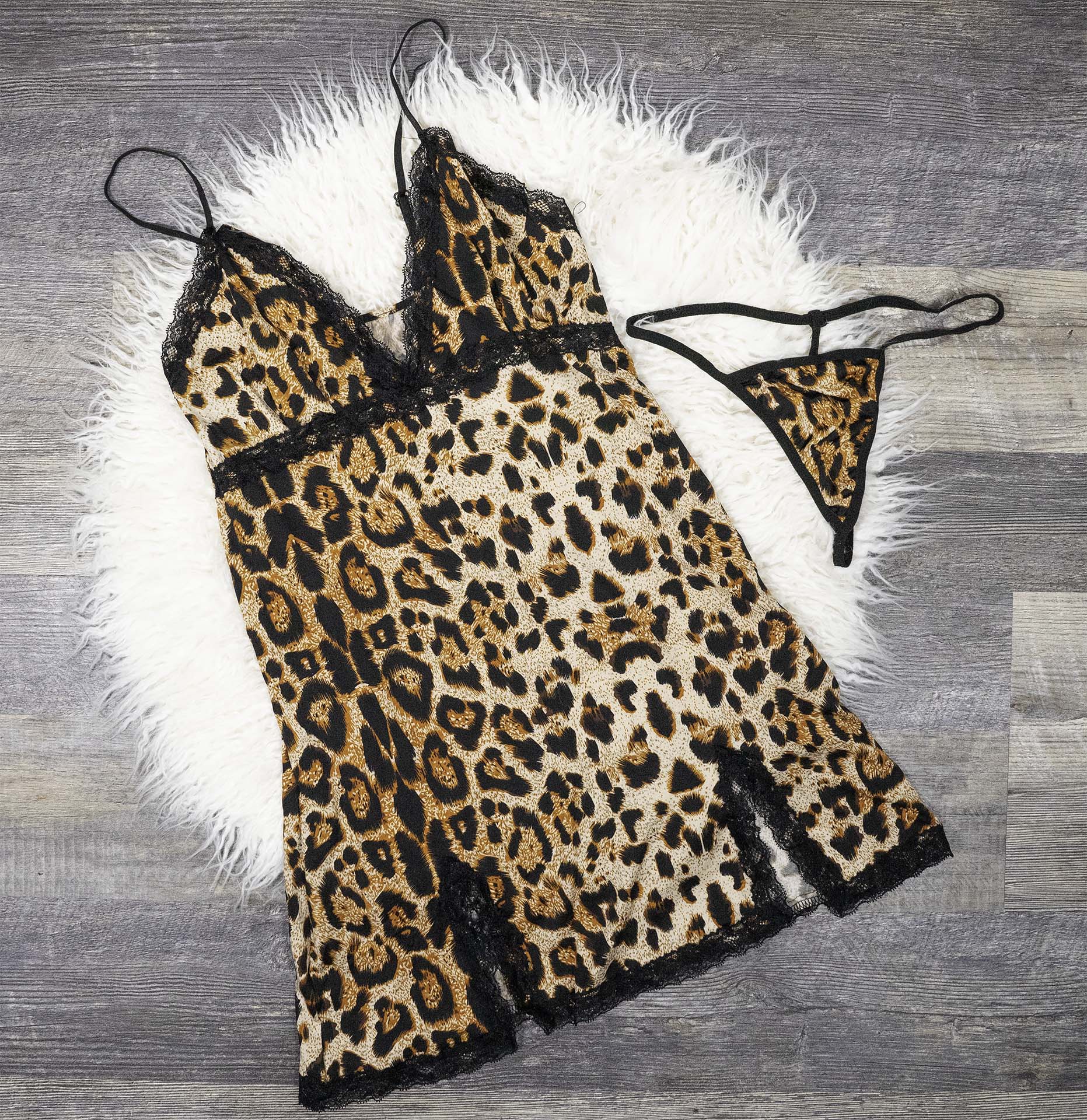 This lingerie sleepwear features the perfect leopard print design. Feels smooth and comfortable on skin.