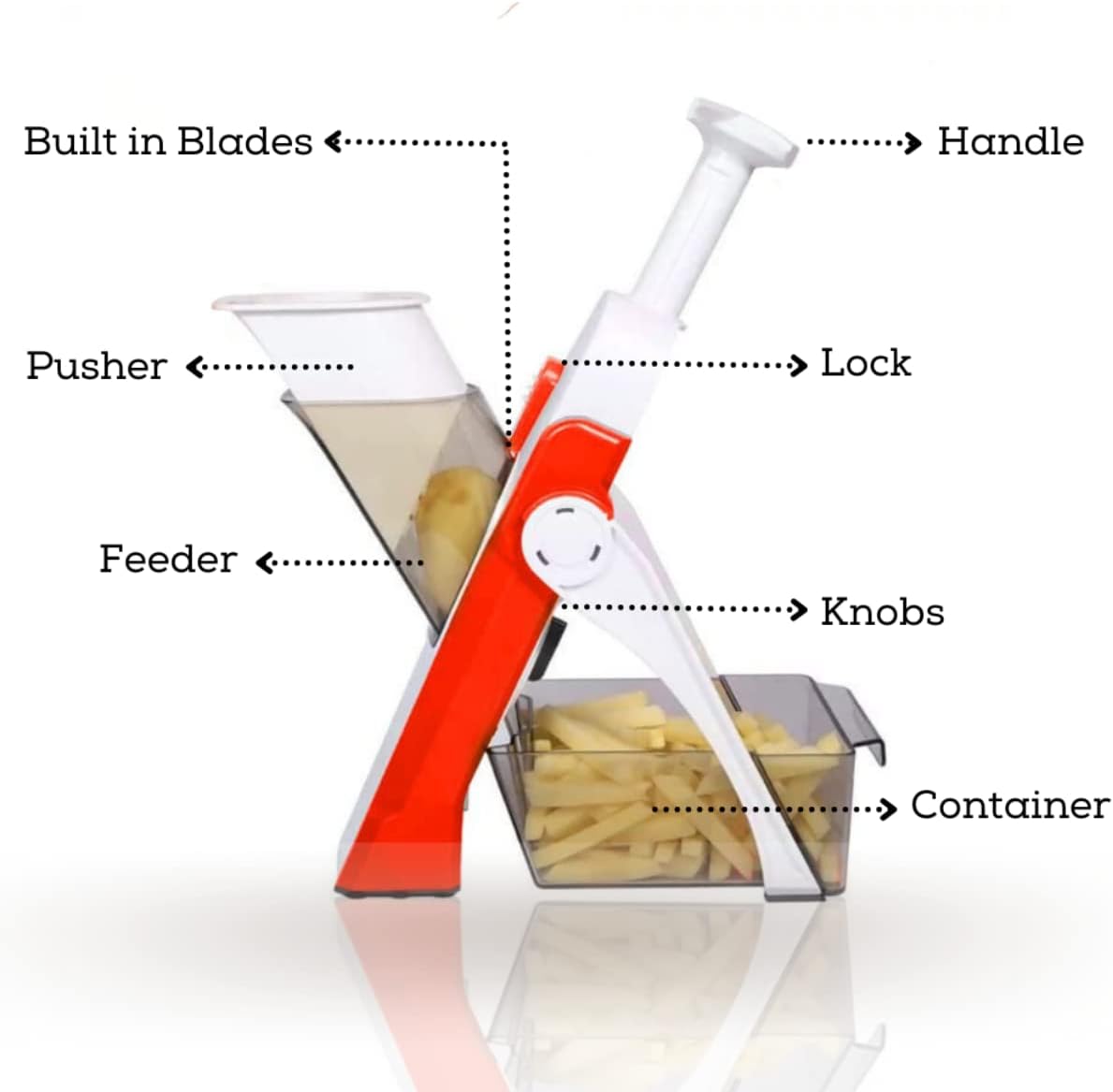 Convenient Storage Our chopper vegetable slicer is easy to disassemble, and the foldable shape makes storage a breeze. It requires little storage space and is an excellent kitchen helper.