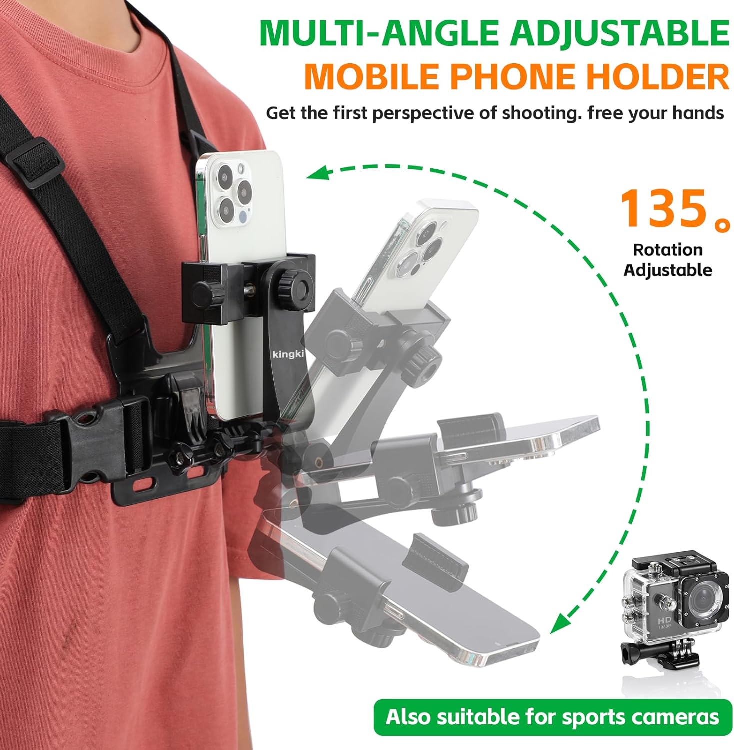 • 【Great Choice for POV/VLOG】: This phone chest strap holder for video shooting is the best tool to shoot excellent VLOG / POV video in the first person perspective