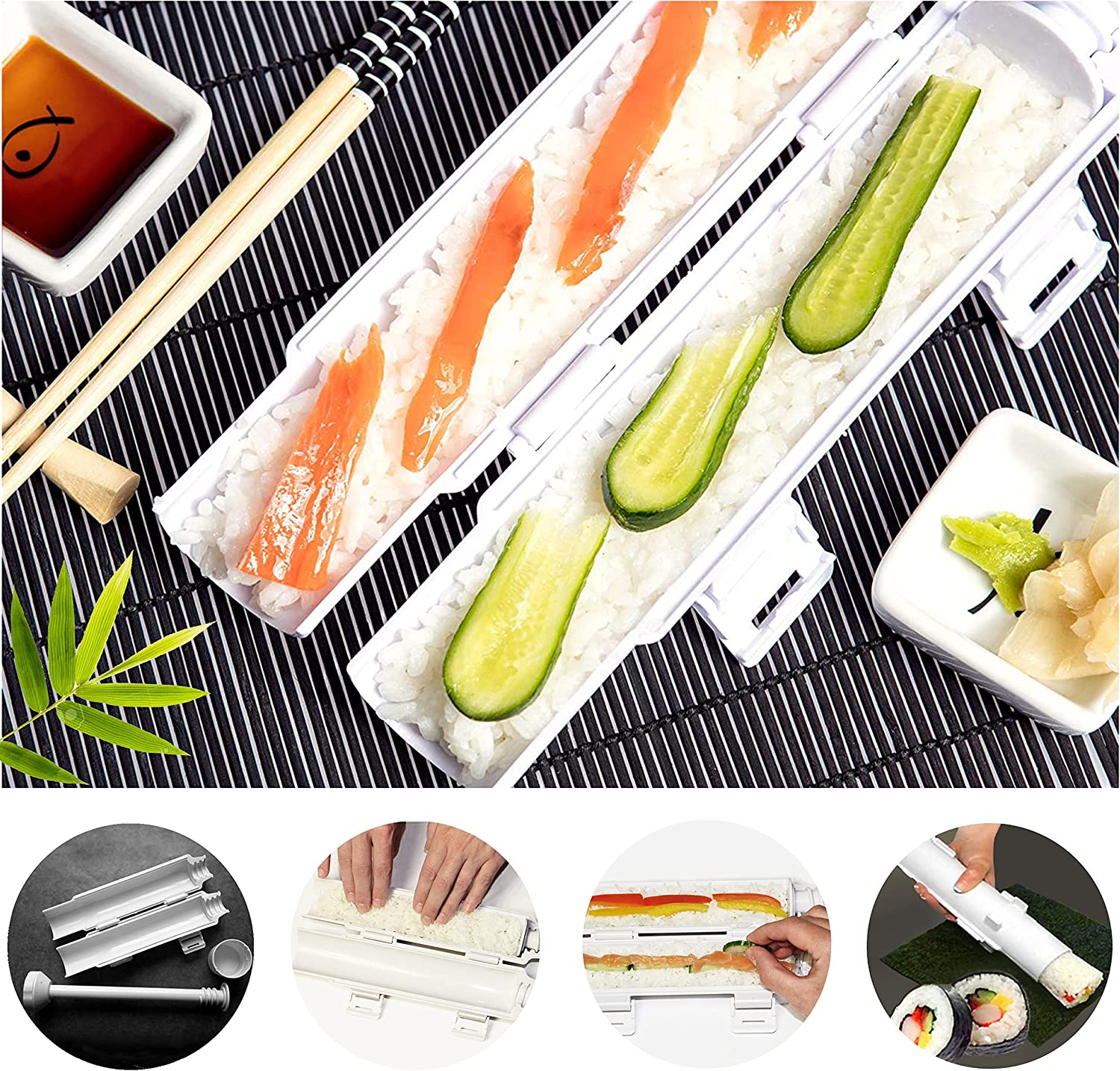 This tool is perfect for any sushi lover. Use the following steps to make sushi: