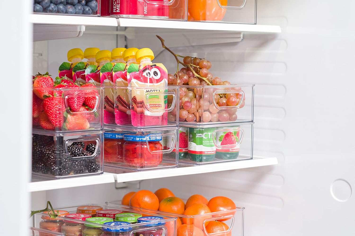 Keep your refrigerator, freezer, countertops, kitchen cabinet or pantry neatly organized with these stackable fridge organizer pantry storage bins.