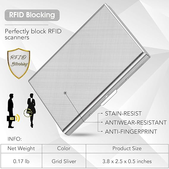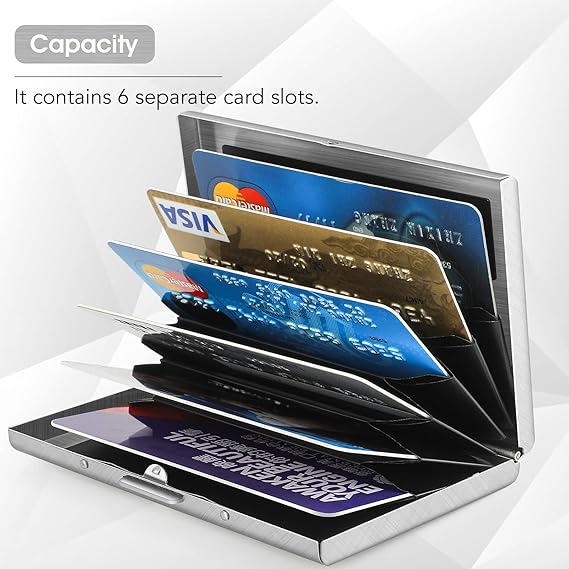 Material: Premium stainless steel credit card holder. Made with high quality stainless steel - sturdy & durable.