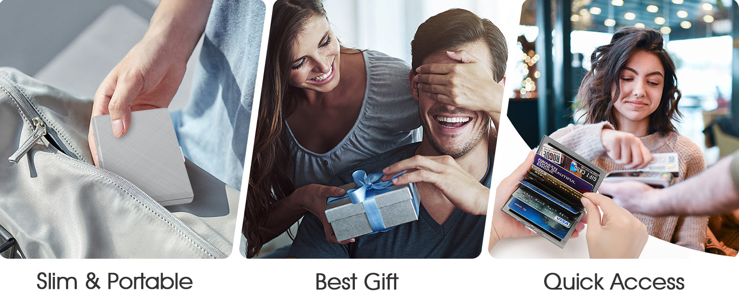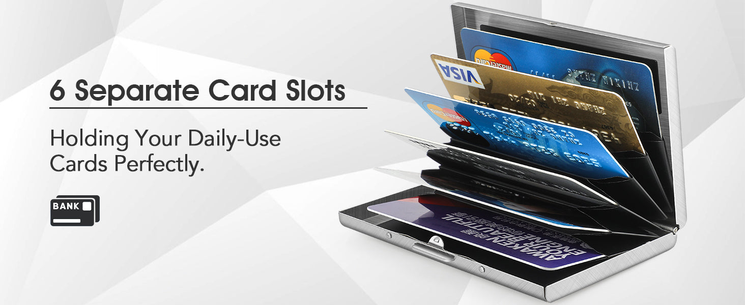 This stainless steel slim card wallet fits perfectly in your pocket or purse.