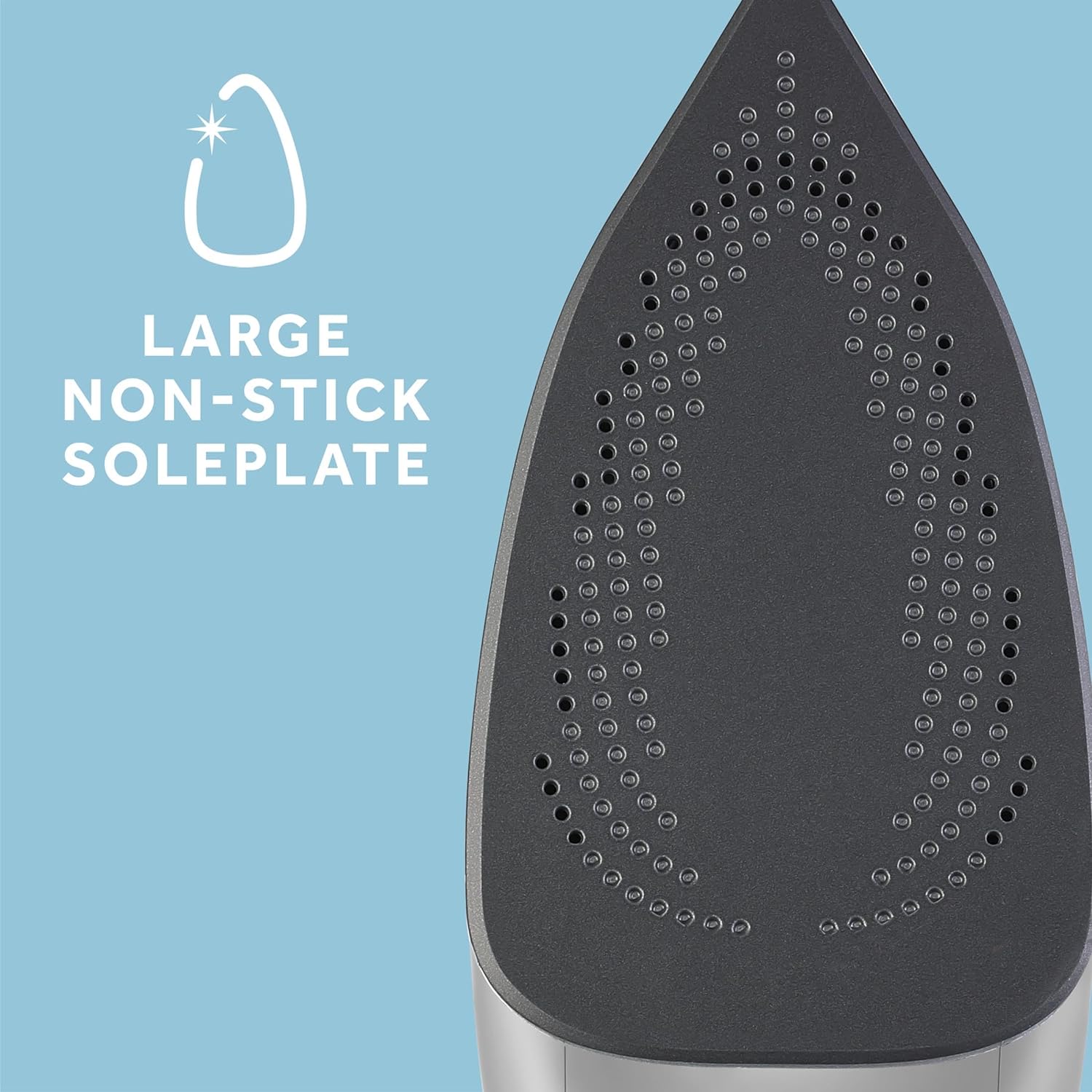 NON-STICK SOLEPLATE: Full size nonstick soleplate glides smoothly over fabrics
