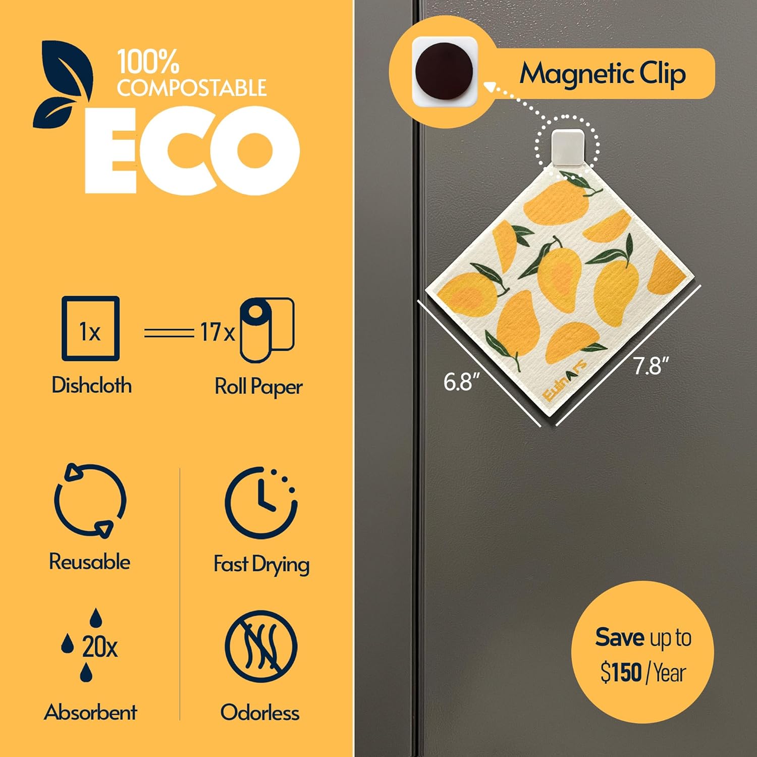 • Washable and Resuable: Tested to be reusable up to 200 times, our swedish dish cloths for washing dishes can replace up to 17 rolls of paper towels. Affordable, durable, and easy to care for, they offer a long-lasting alternative to disposable paper towels