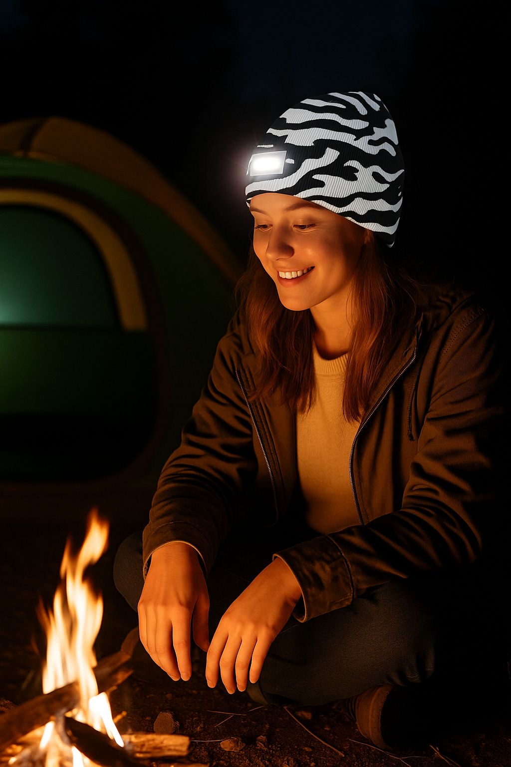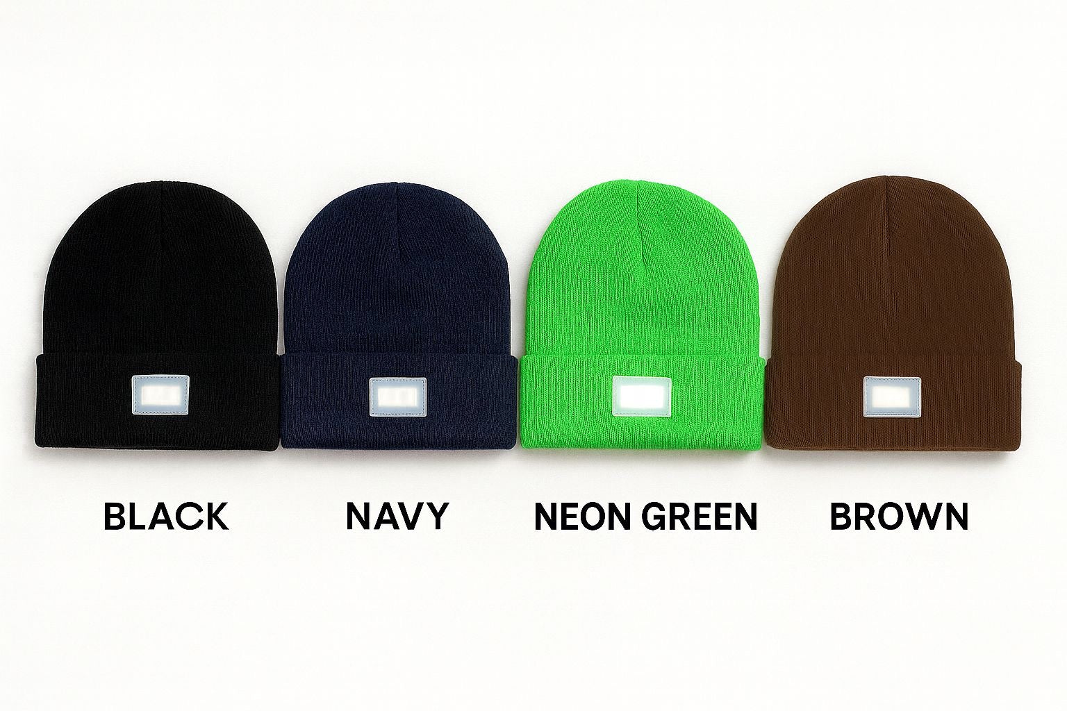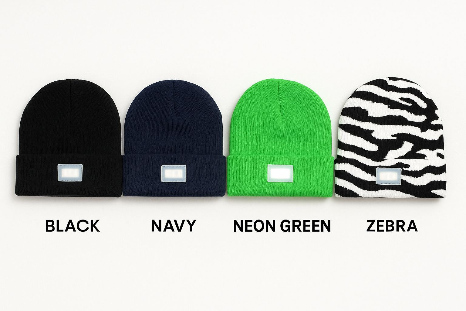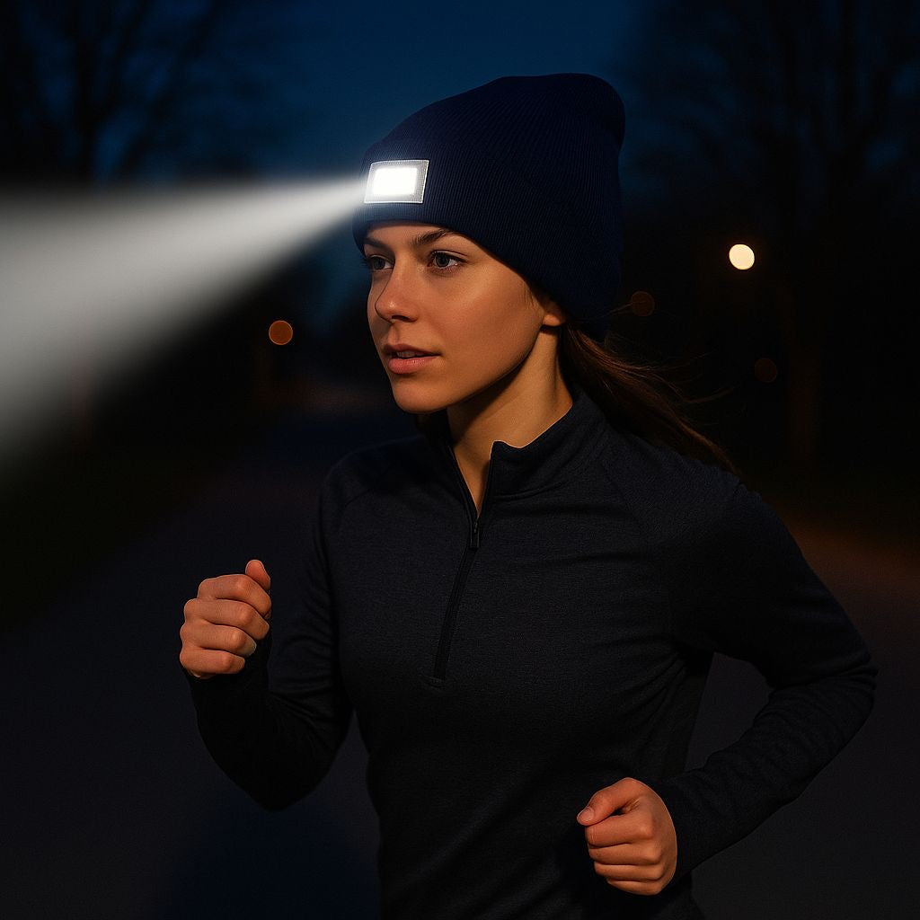 • Hands-Free Lighting – Bright LED light built directly into the beanie, perfect for running, hiking, camping, dog walking, or working in low light.