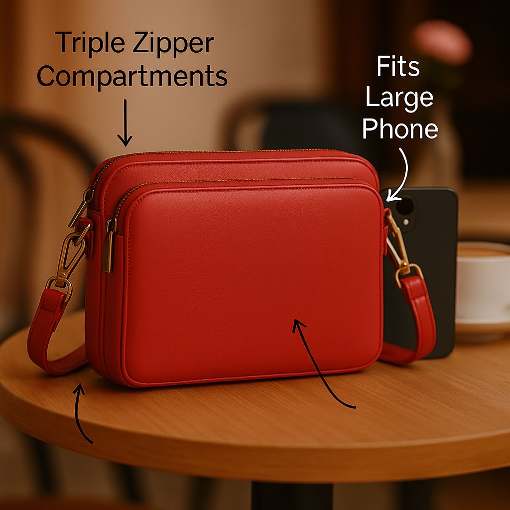 Elevate your everyday look with the RJK Triple-Zip Crossbody Bag, designed for women who value both style and practicality.
