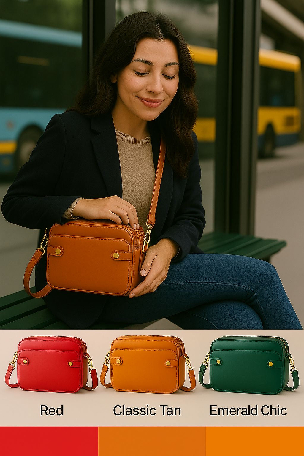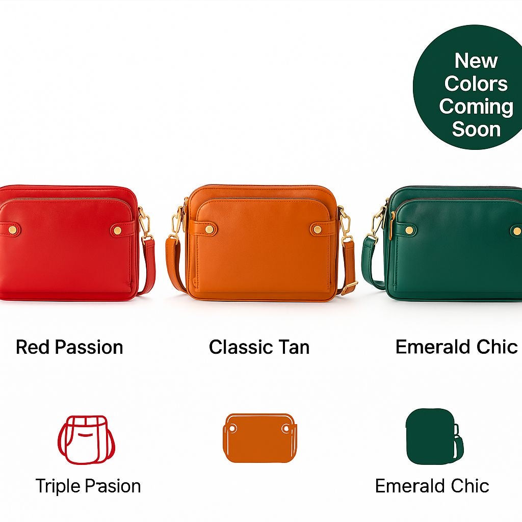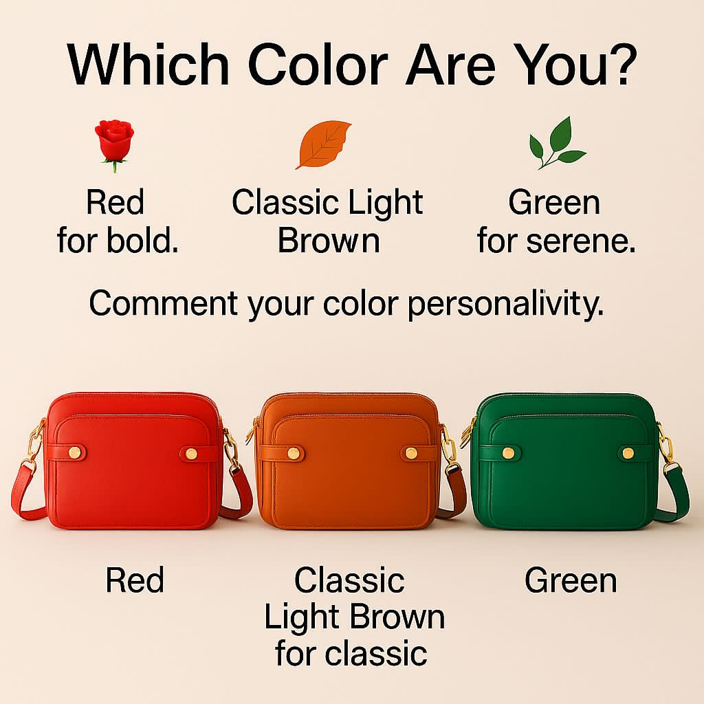 Lightweight yet durable, this versatile handbag perfectly balances fashion and function — available in Red, Classic Tan, and Emerald Chic, each offering a unique personality to match your style.