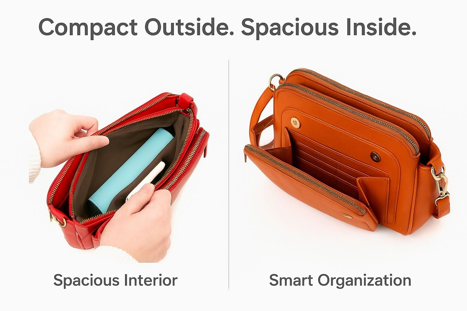 Triple Zipper Compartments – Keep your items perfectly organized and secure.